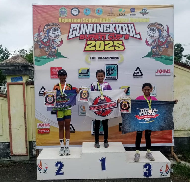 BERITAMAGELANG.ID - Atlet muda Kabupaten Magelang kembali menorehkan prestasi membanggakan di kancah nasional. Tiga atlet dari Magelang Speed Skating (MSS) Club, klub resmi di bawah naungan Pengkab Porserosi Kabupaten Magelang, berhasil menyabet empat medali emas dalam ajang Kejuaraan Sepatu Roda Tingkat Nasional Gunung Kidul Bupati Cup II 2025, Jumat (31/10).