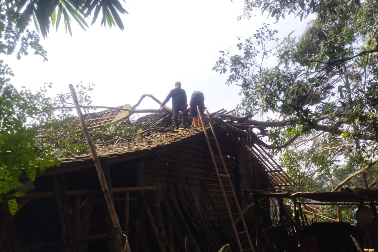 berdiameter kurang lebih satu meter tumbang dan menimpa rumah warga di Dusun