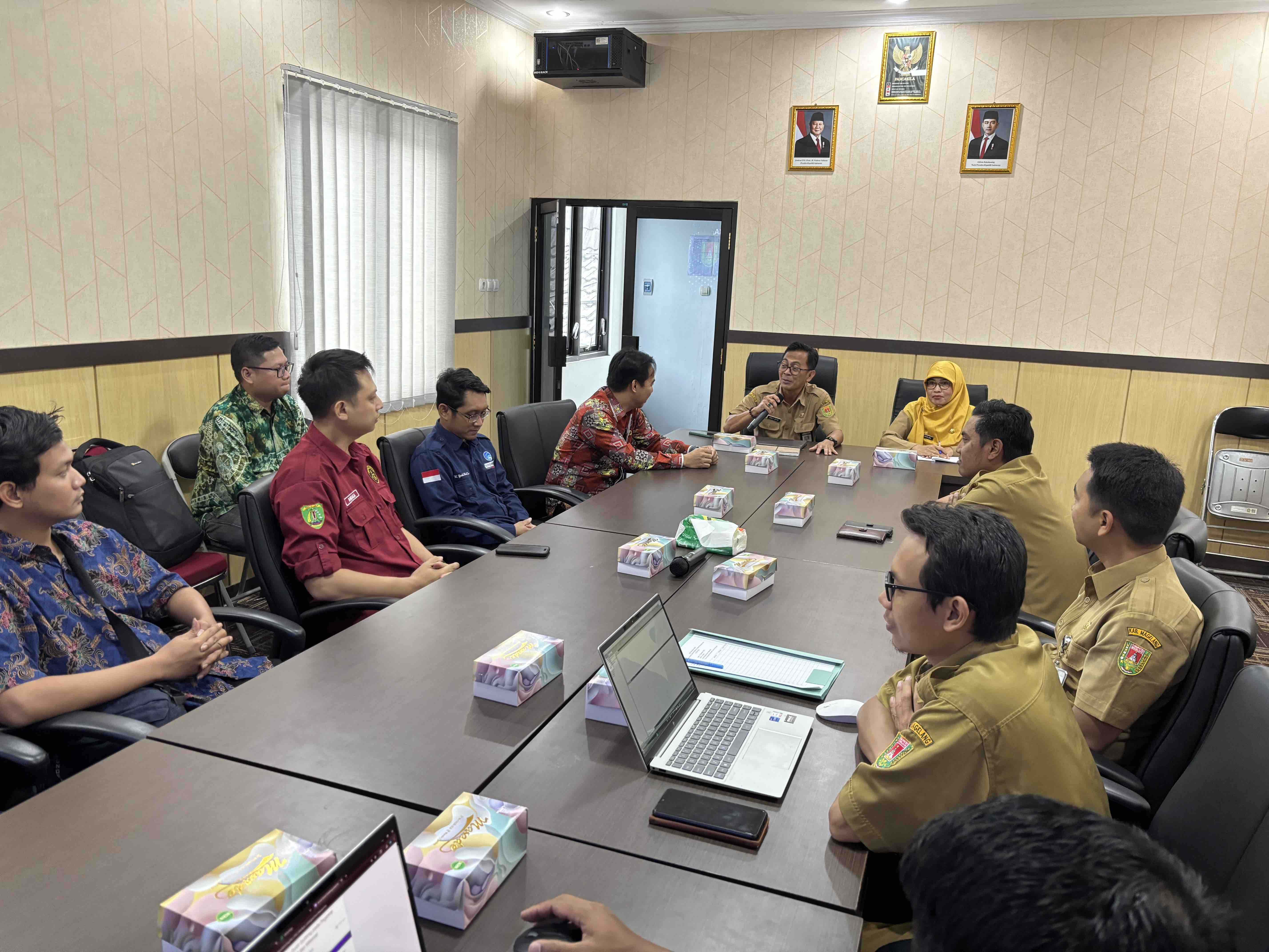 BERITAMAGELANG.ID - Dinas Komunikasi, Informatika, Persandian dan Statistik (Diskominfo Santik) Kabupaten Barito Timur melakukan kunjungan kerja ke Diskominfo Kabupaten Magelang. Kegiatan yang berlangsung di ruang Smart Room Diskominfo Kabupaten Magelang, Senin (15/12), ini bertujuan untuk menggali strategi pengembangan ekonomi, pariwisata, serta pemanfaatan teknologi digital yang telah berhasil diterapkan di Kabupaten Magelang.