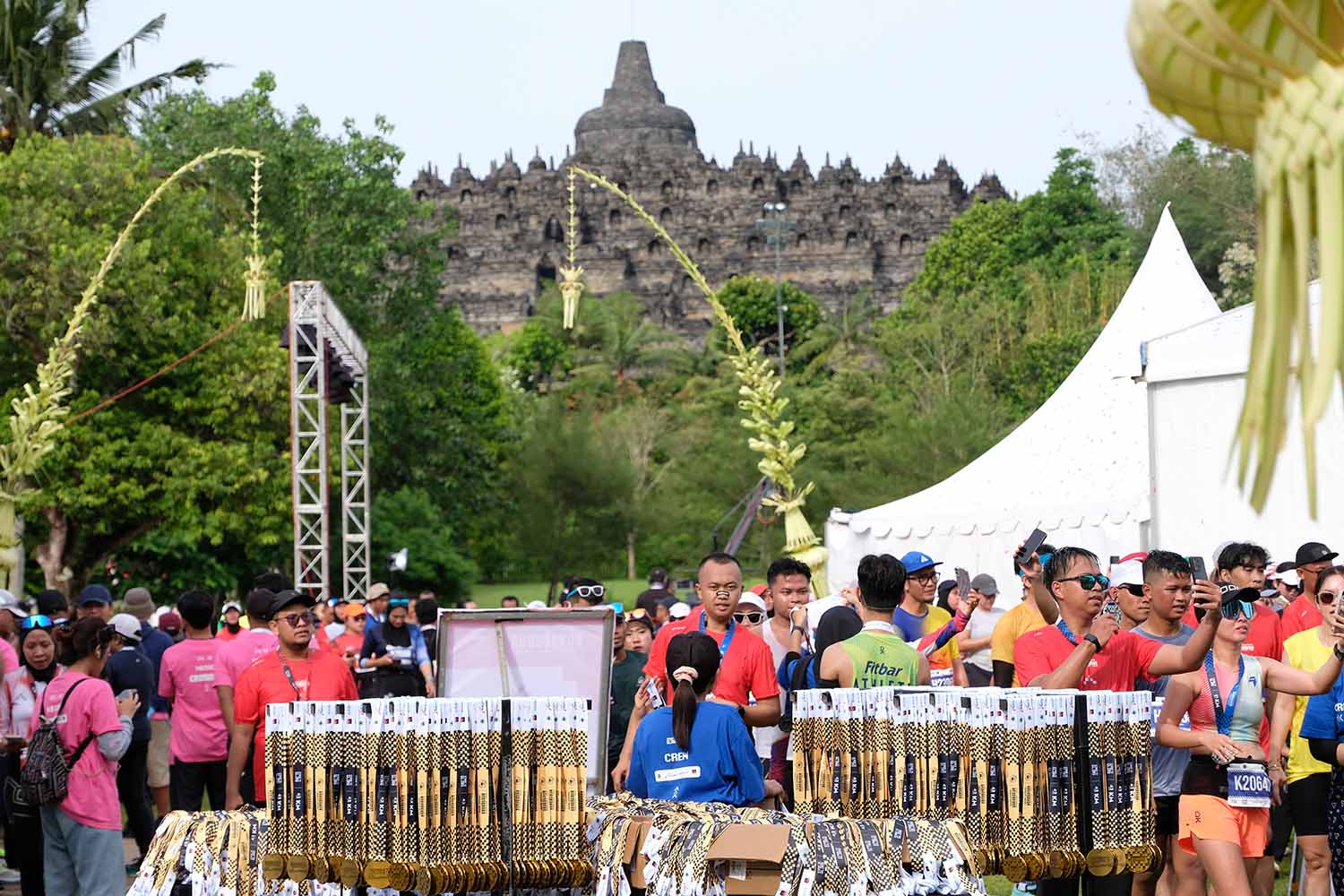 Sebanyak 11,500 pelari dari 38 negara meramaikan Borobudur Marathon 2025.