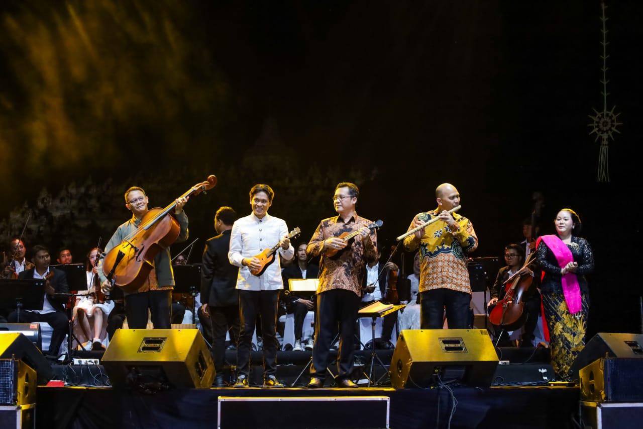 Musisi nasional, Kunto Aji tampil menjadi bintang tamu utama dalam Konser Borobudur Moon: Indonesia Keroncong Festival 2025.