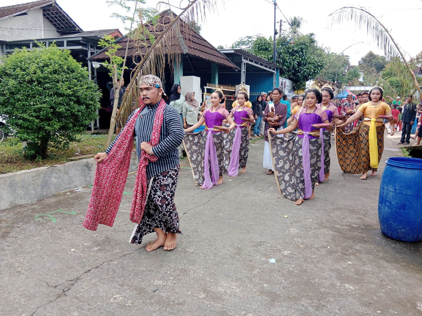 Para pemuda pemudi desa setempat mengiringi para sesepuh Dusun Dawung menuju ke sendang Dawung.