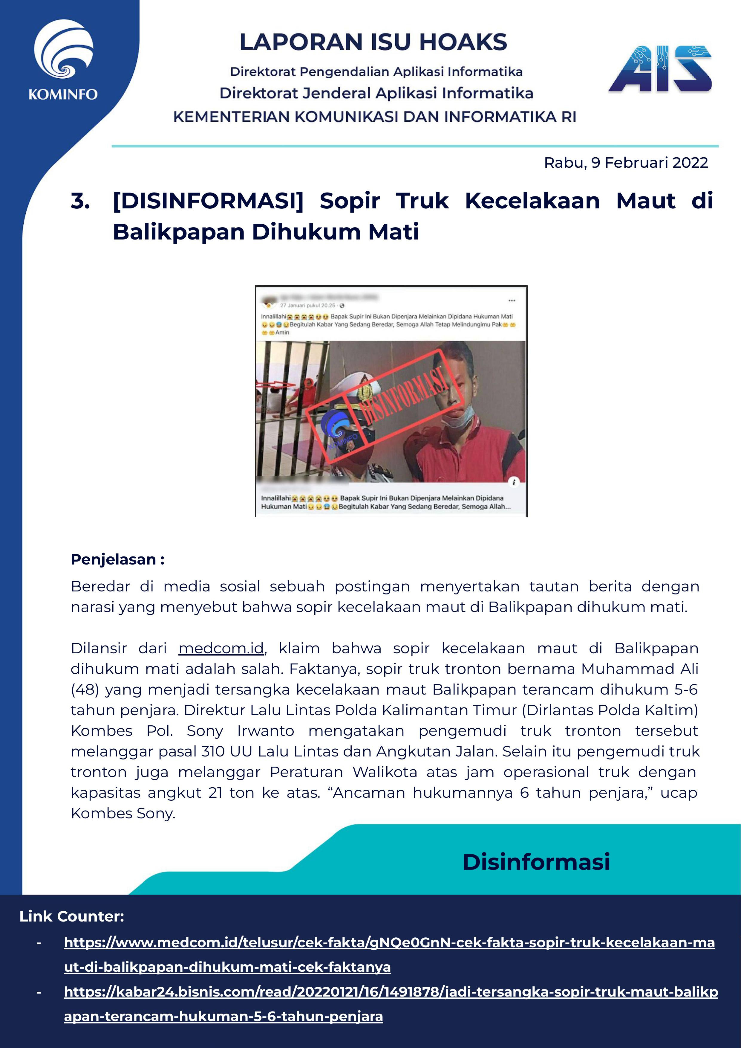 Klarifikasi Isu Hoaks 9 Februari 2022