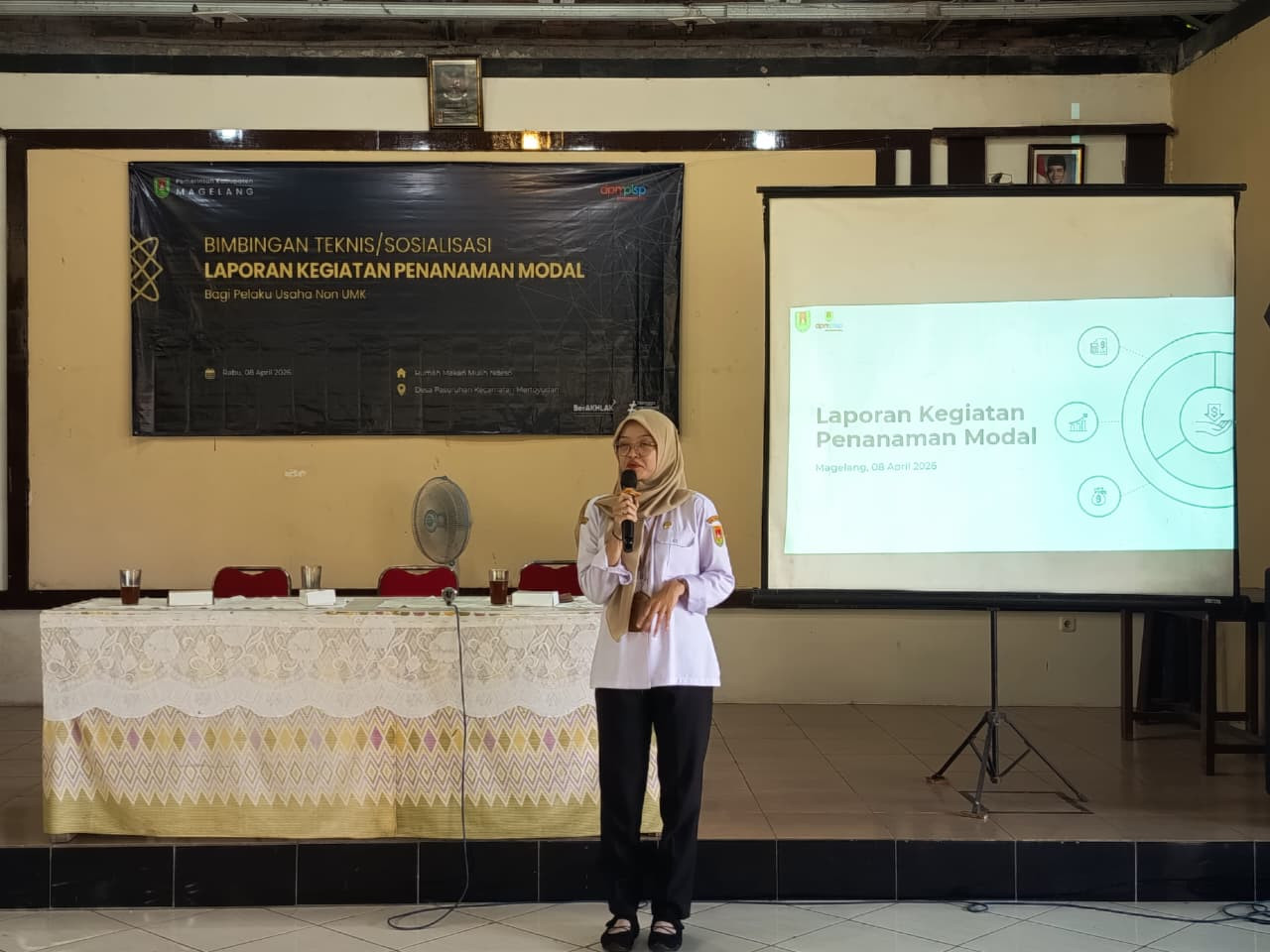BERITAMAGELANG.ID - Dalam rangka mendukung visi misi Bupati Magelang Periode 2025-2030 yaitu Magelang Anyar Gress (Magelang Aman, Nyaman, Religius, Unggul, dan Sejahtera), Dinas Penanaman Modal dan Pelayanan Terpadu Satu Pintu (DPMPTSP) Kabupaten Magelang menggelar Bimbingan Teknis dan Sosialisasi Laporan Kegiatan Penanaman Modal (LKPM).