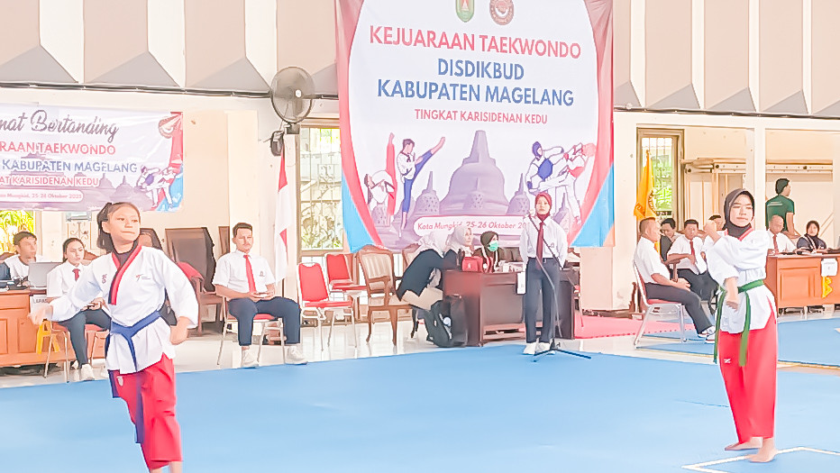 BERITAMAGELANG.ID - Dinas Pendidikan dan Kebudayaan Kabupaten Magelang menyelenggarakan Kejuaraan Taekwondo Tingkat Karisedenan Kedu pada 25 hingga 26 Oktober 2025. Bertempat di GOR Gemilang, Kota Mungkid, ajang ini diikuti oleh ratusan atlet muda dari berbagai kabupaten/kota di wilayah Karesidenan Kedu, seperti Magelang, Temanggung, Wonosobo, Purworejo, dan Kebumen.