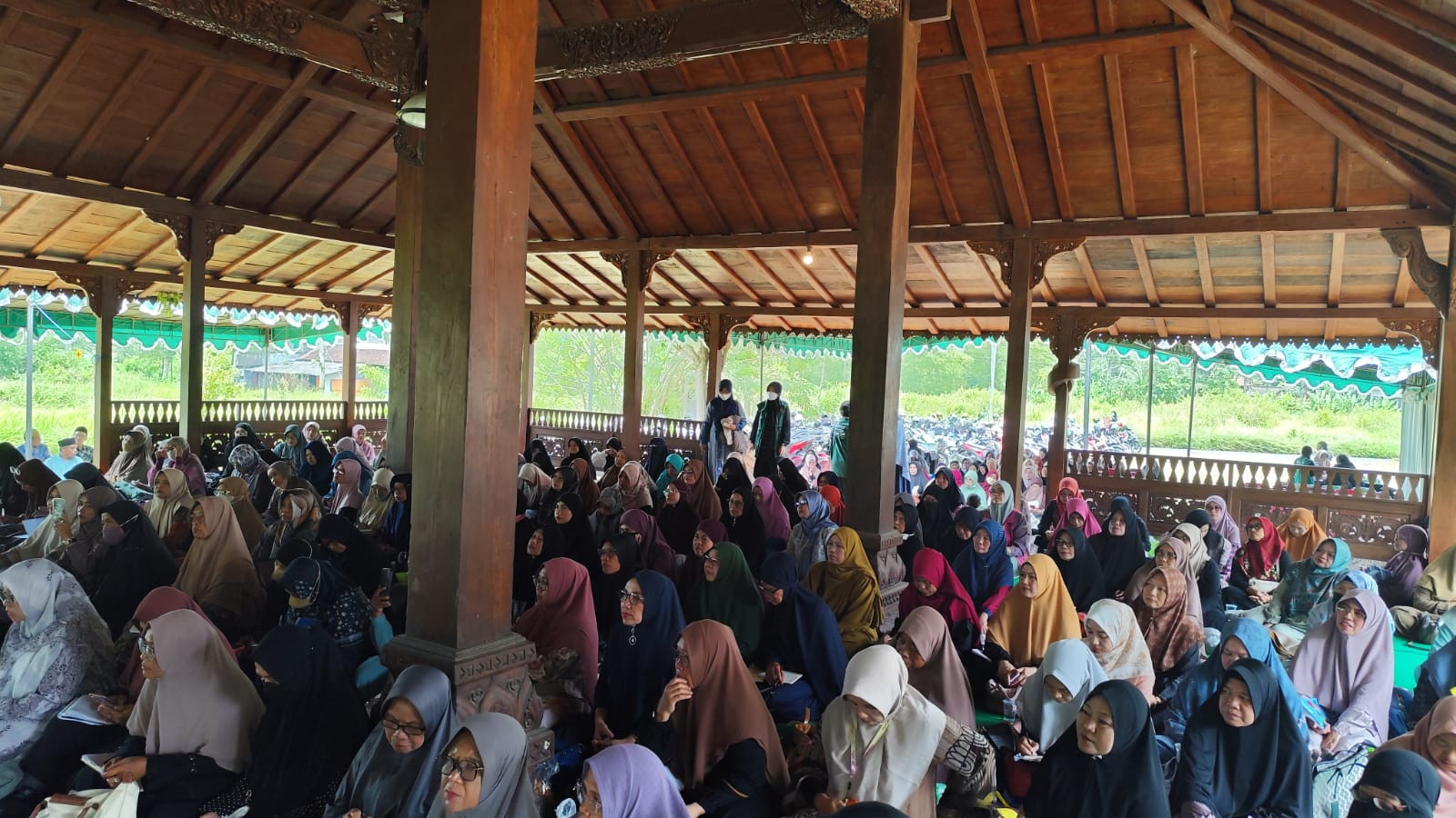 Para jemaah tampak serius menyimak, mencatat untuk mengikat ilmu, khususnya ketika Ustad Dani menerangkan kesyirikan dan maksiat juga akan mencelakakan diri manusia di dunia dan akhirat, bahkan mencelakakan anak cucu.