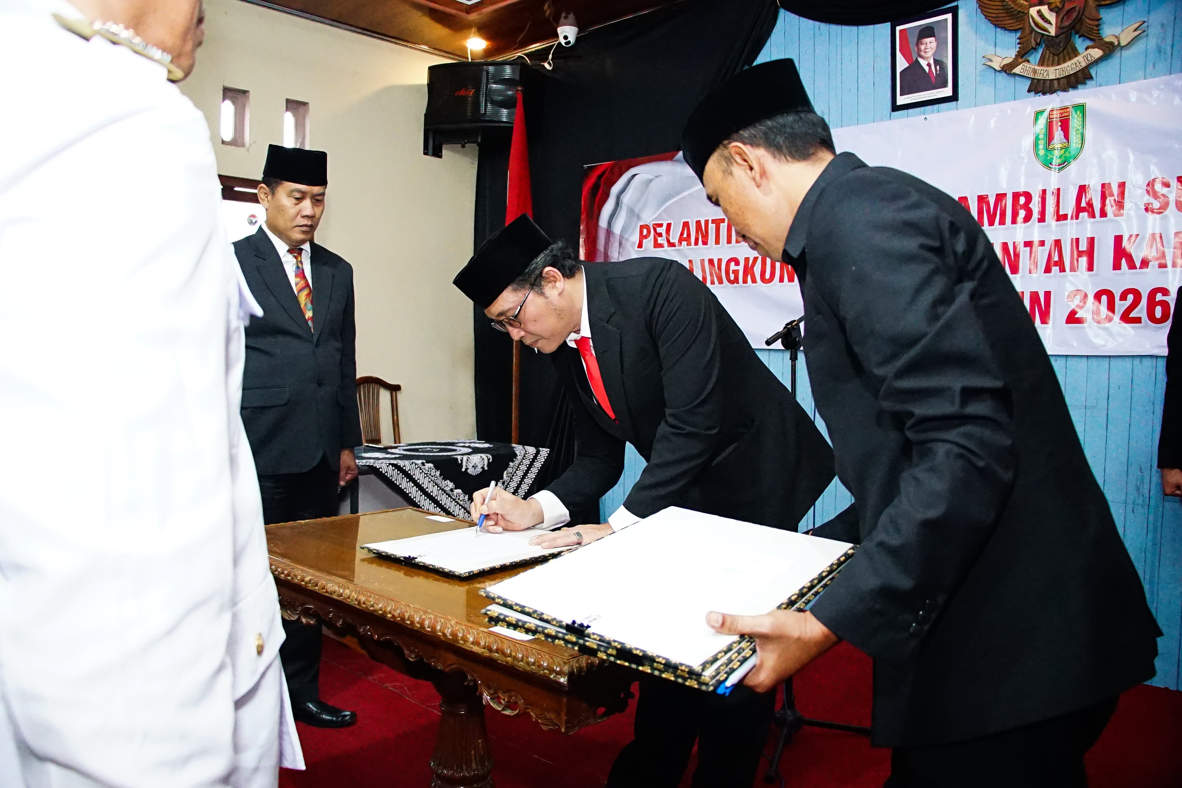 BERITAMAGELANG.ID - Sebanyak 82 pejabat di lingkungan Pemerintah Kabupaten Magelang dilantik dan diambil sumpah jabatannya oleh Bupati Grengseng Pamuji di Balai Desa Mangli, Kecamatan Kaliangkrik, Kamis (5/2).
