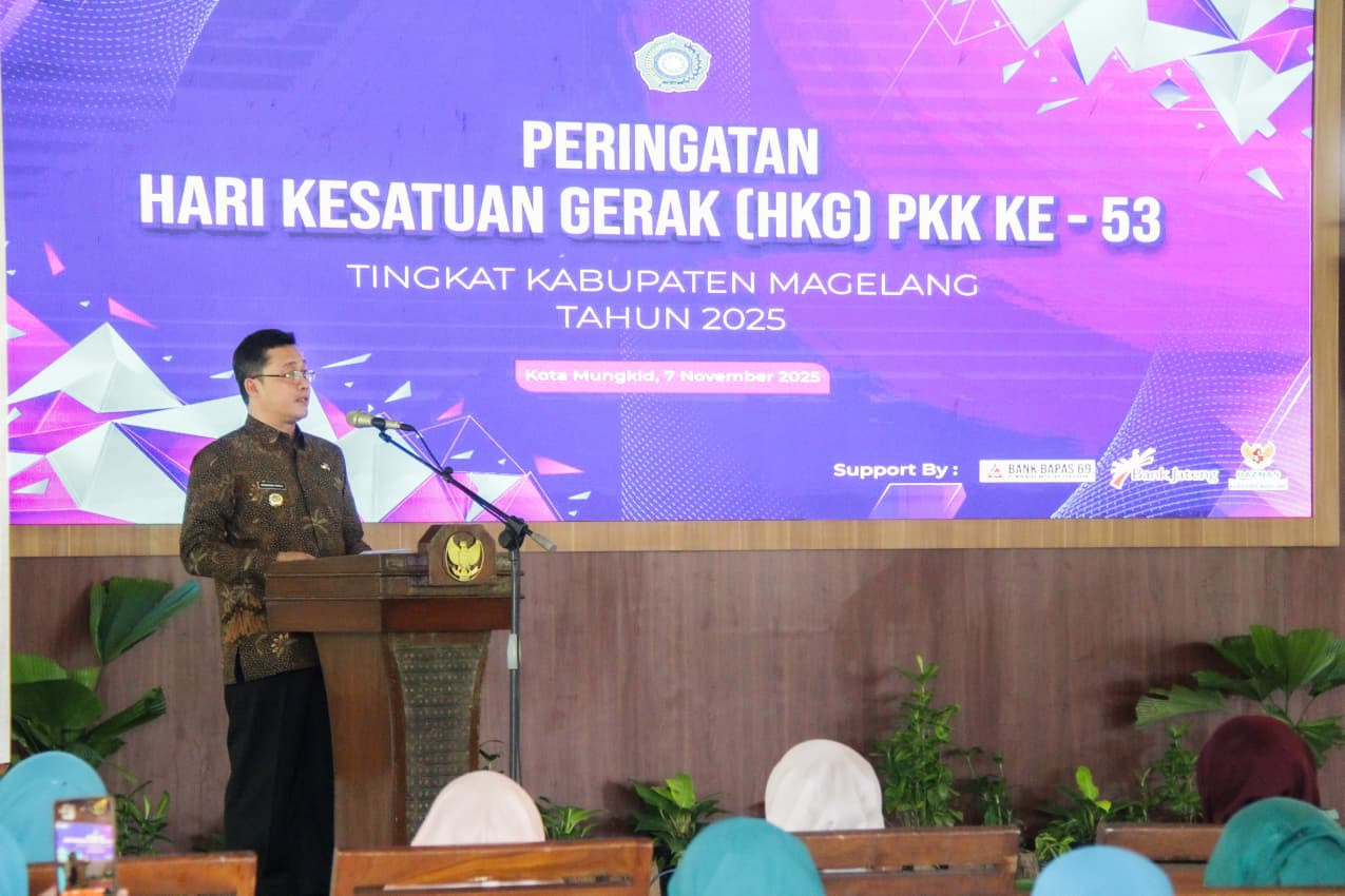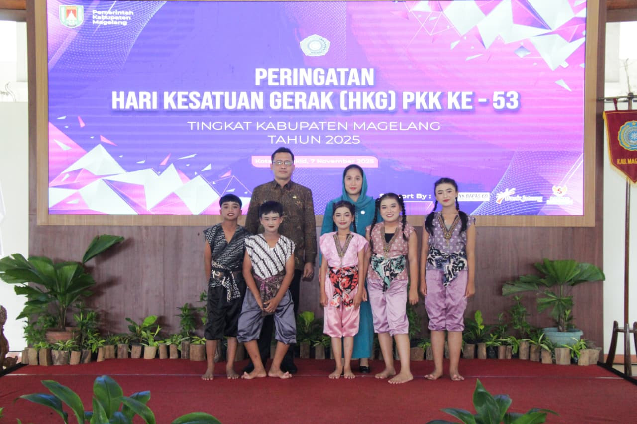 BERITAMAGELANG.ID - Bupati Magelang Grengseng Pamuji didampingi Ketua TP PKK Kabupaten Magelang Dian Grengseng Pamuji menghadiri puncak peringatan Hari Kesatuan Gerak (HKG) PKK Ke-53 Tingkat Kabupaten Magelang di Pendopo Setda Kabupaten Magelang, Jumat (7/11).