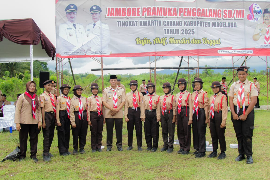 BERITAMAGELANG.ID - Wakil Bupati Magelang, Sahid membuka Jambore Cabang SD/MI ke-5 Kwarcab Magelang Tahun 2025 di Lapangan Desa Kebonrejo, Kecamatan Salaman, Selasa (28/10).